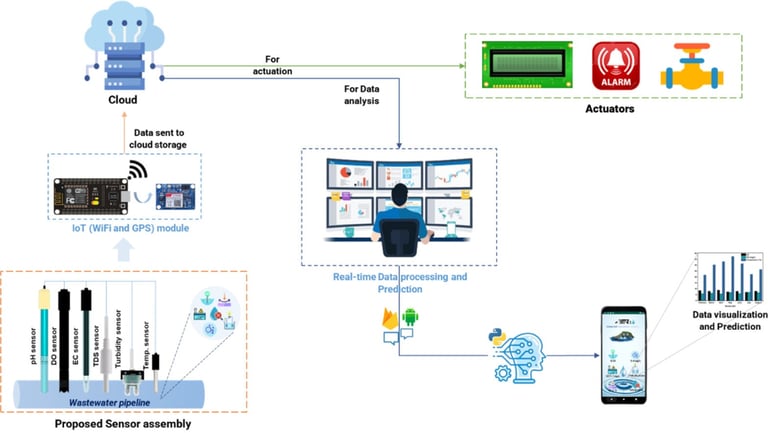 Our project focuses on the use of sensors to monitor wastewater quality in real-time, assisting in more effective and environmentally friendly treatment and management.
